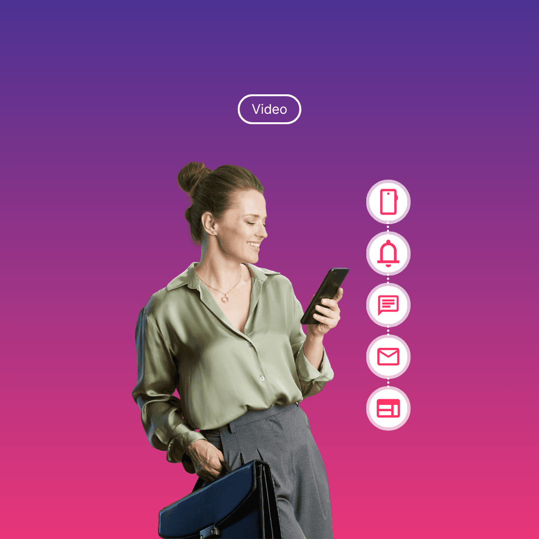 This means that video content can appear across a variety of platforms, like email, websites, mobile apps, SMS/MMS/RCS, push notifications, social media, and WhatsApp. Instead of producing entirely new content for each platform, marketers can distribute and adapt the same video assets across multiple channels.